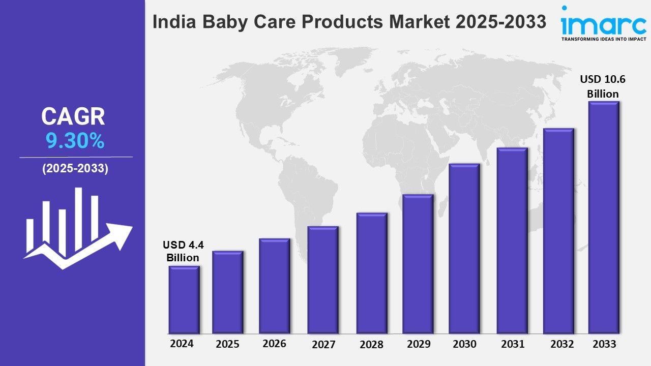 According to IMARC Group's report titled "India Baby Care Products Market Size, Share, Trends and Forecast by Product Type, Category, Distribution Channel, and Region, 2025-2033", the report presents a thorough review featuring the market share, growth, share, trends, and research of the industry.