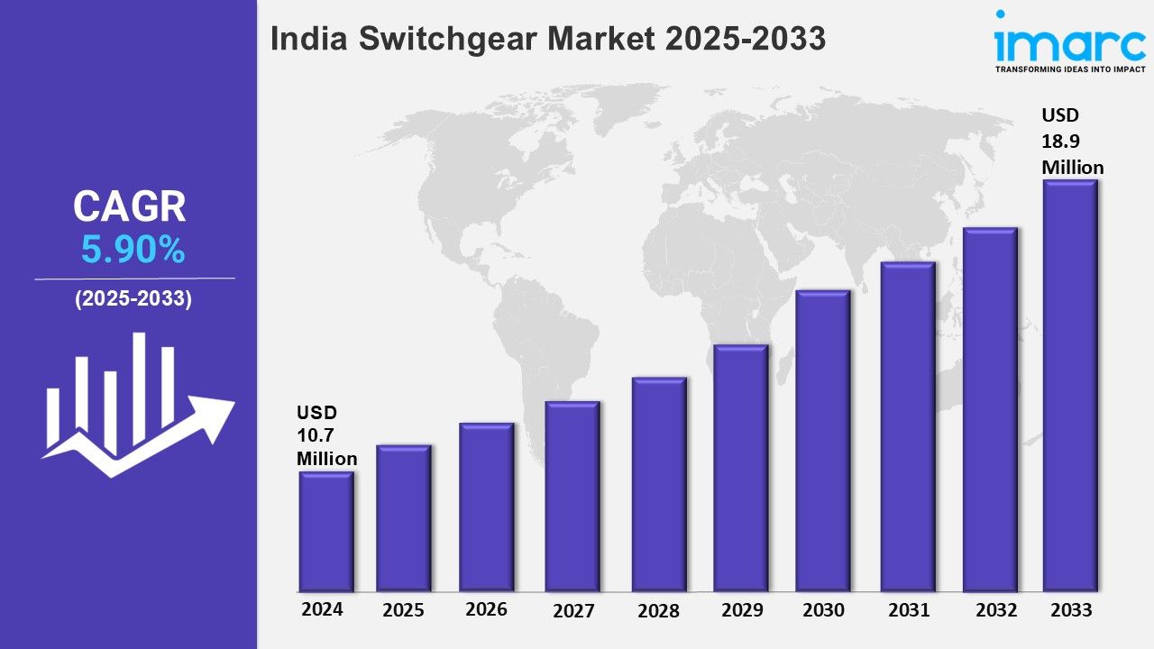 The India switchgear market size reached USD 10.7 Million in 2024 and is expected to reach USD 18.9 Million by 2033, exhibiting a growth rate (CAGR) of 5.90% during 2025-2033.